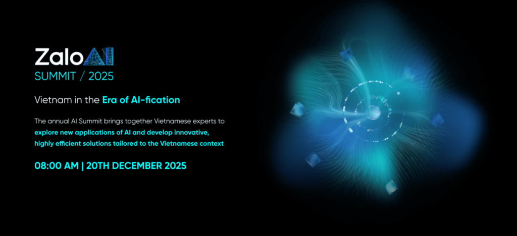 Vào lúc 8:00 ngày 20/12/2025, sự kiện AI thường niên quy mô lớn Zalo AI Summit 2025 đã chính thức diễn ra tại VNG Campus, Khu chế xuất Tân Thuận, TP.HCM. Đánh dấu năm thứ 8 được tổ chức, chương trình tiếp tục khẳng định vị thế là một trong những diễn đàn uy tín hàng đầu dành cho cộng đồng nghiên cứu và ứng dụng trí tuệ nhân tạo tại Việt Nam, thu hút sự quan tâm rộng rãi của giới công nghệ trong và ngoài nước. Với chủ đề “Việt Nam trong kỷ nguyên AI hóa – Vietnam in the Era of AI-fication”, sự kiện hướng đến việc phác họa bức tranh toàn cảnh về tiềm năng, cơ hội và thách thức của AI trong bối cảnh phát triển hiện nay tại Việt Nam.
