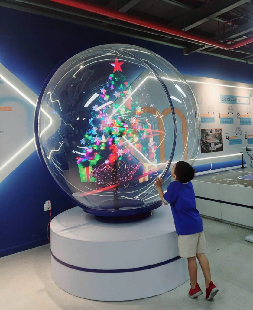 Tại khu vực trưng bày, thiết bị Holofan được đưa vào sử dụng như một điểm nhấn công nghệ hiện đại. Các nội dung trình chiếu 3D sinh động giúp không gian trở nên sống động hơn, tạo sự khác biệt so với hình thức trưng bày truyền thống. Nhờ đó, người tham quan có thêm trải nghiệm mới mẻ, vừa tiếp cận thông tin vừa thưởng thức hiệu ứng thị giác ấn tượng.