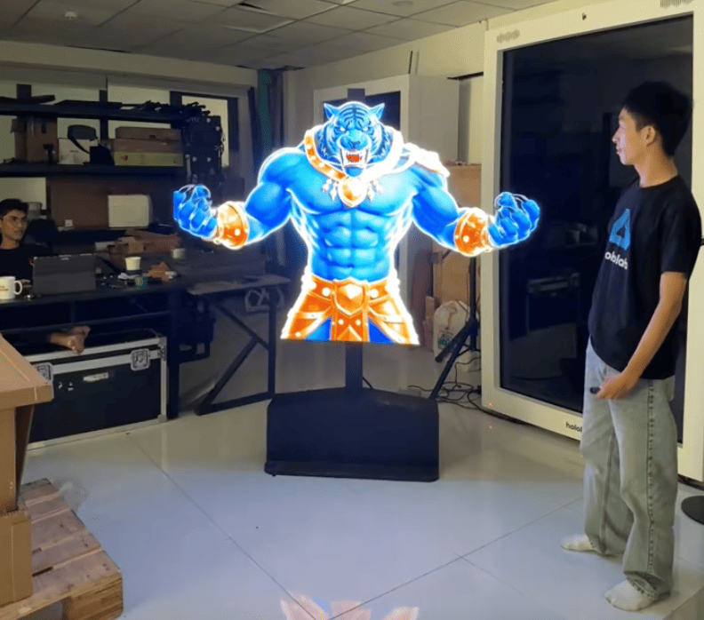Ngoài ra, Holofan 1m6 còn mang đến lợi thế về khả năng thu hút sự chú ý trong không gian rộng. Với kích thước hiển thị lớn, thiết bị dễ dàng trở thành tâm điểm của sân khấu hoặc khu vực trưng bày, giúp tăng hiệu quả truyền thông và quảng bá thương hiệu. Hiệu ứng hologram 3D chuyển động trong không trung tạo cảm giác công nghệ cao, mang lại trải nghiệm tương tác thị giác khác biệt so với các màn hình LED truyền thống.